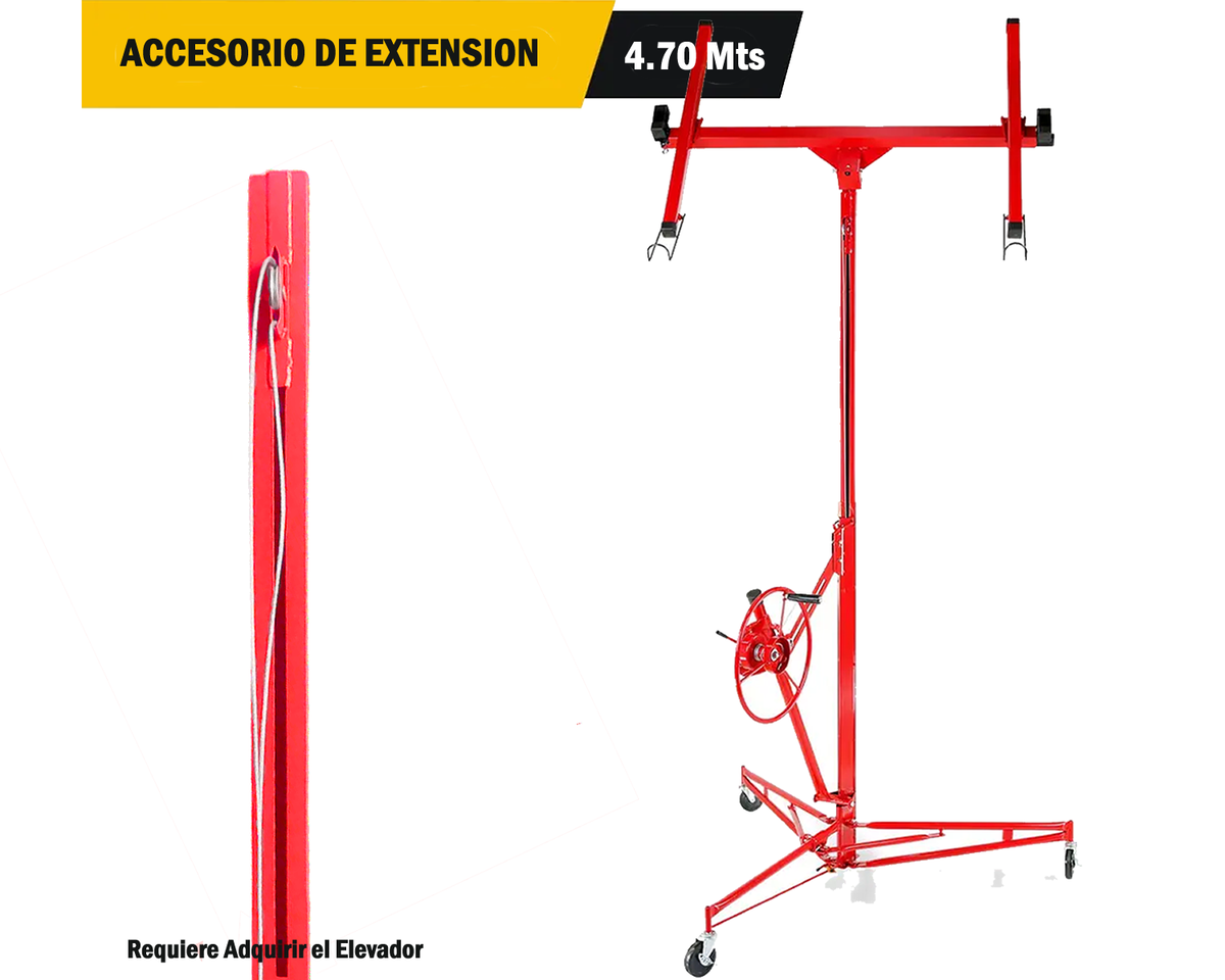 Este accesorio permite que el elevador de placas de yeso llegue 1.40mts más alto de lo que normalmente alcanza
